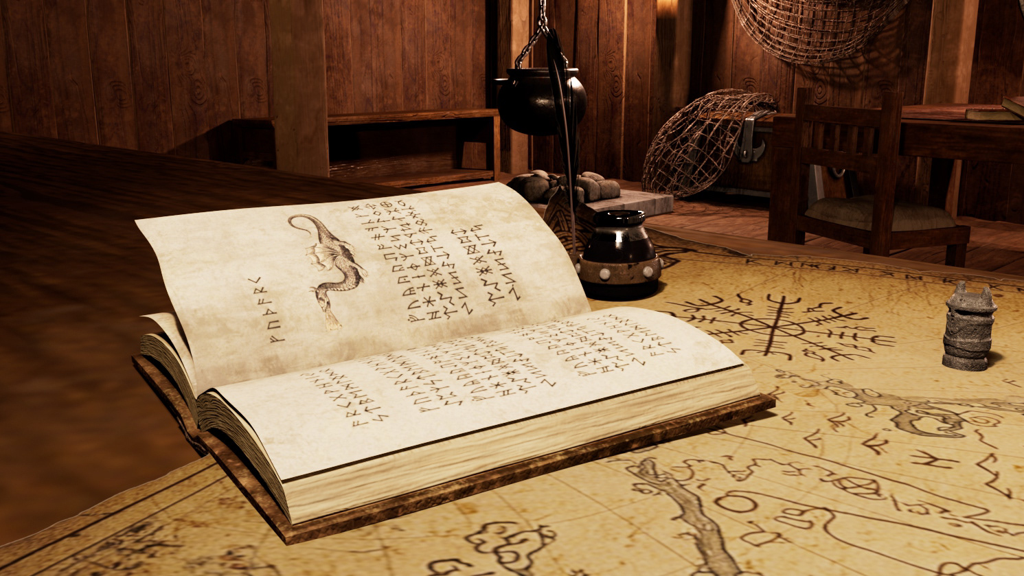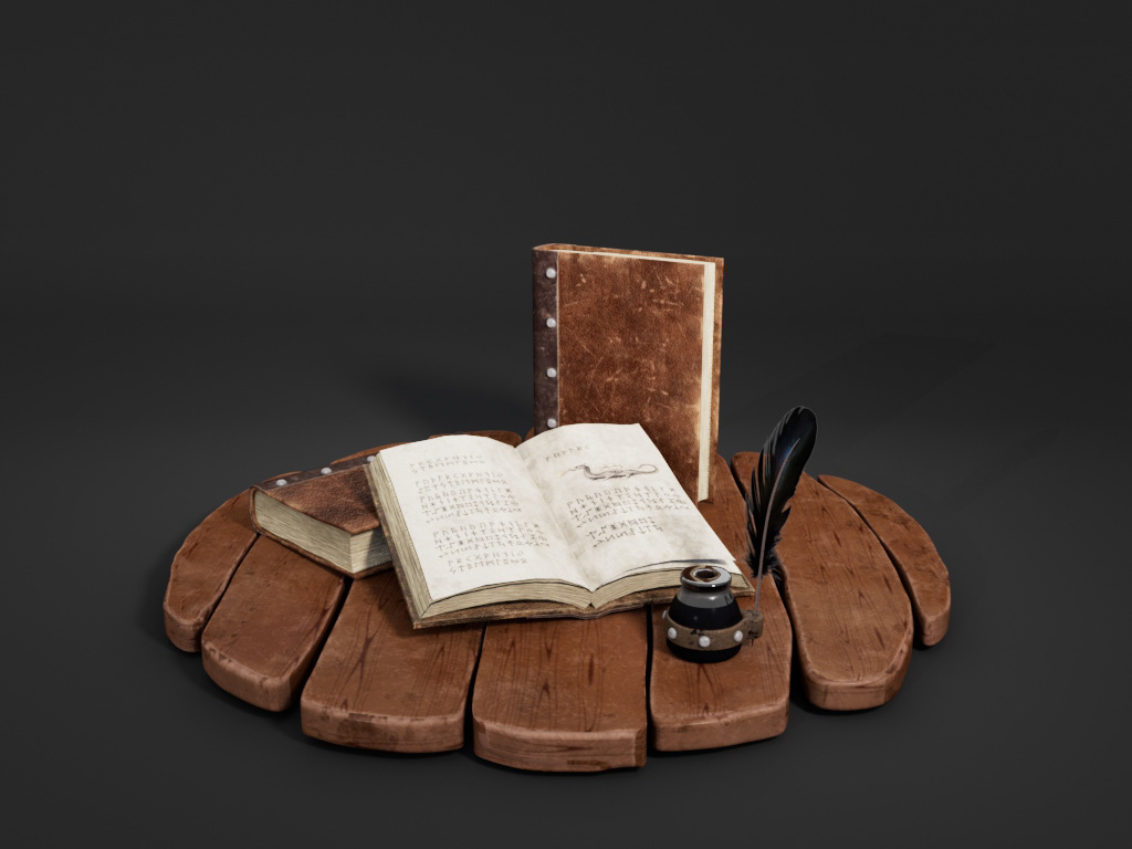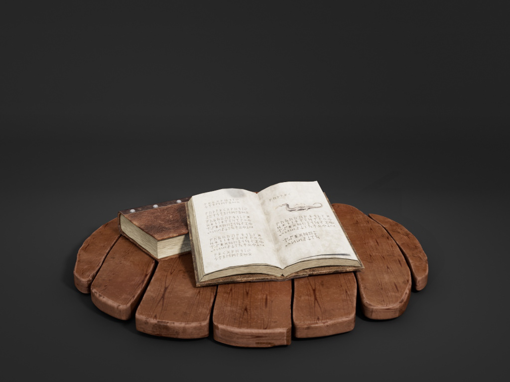 A text written about dragons in the Scandinavian foothills. These Viking Texts were modeled in Maya and textured in Substance Painter.