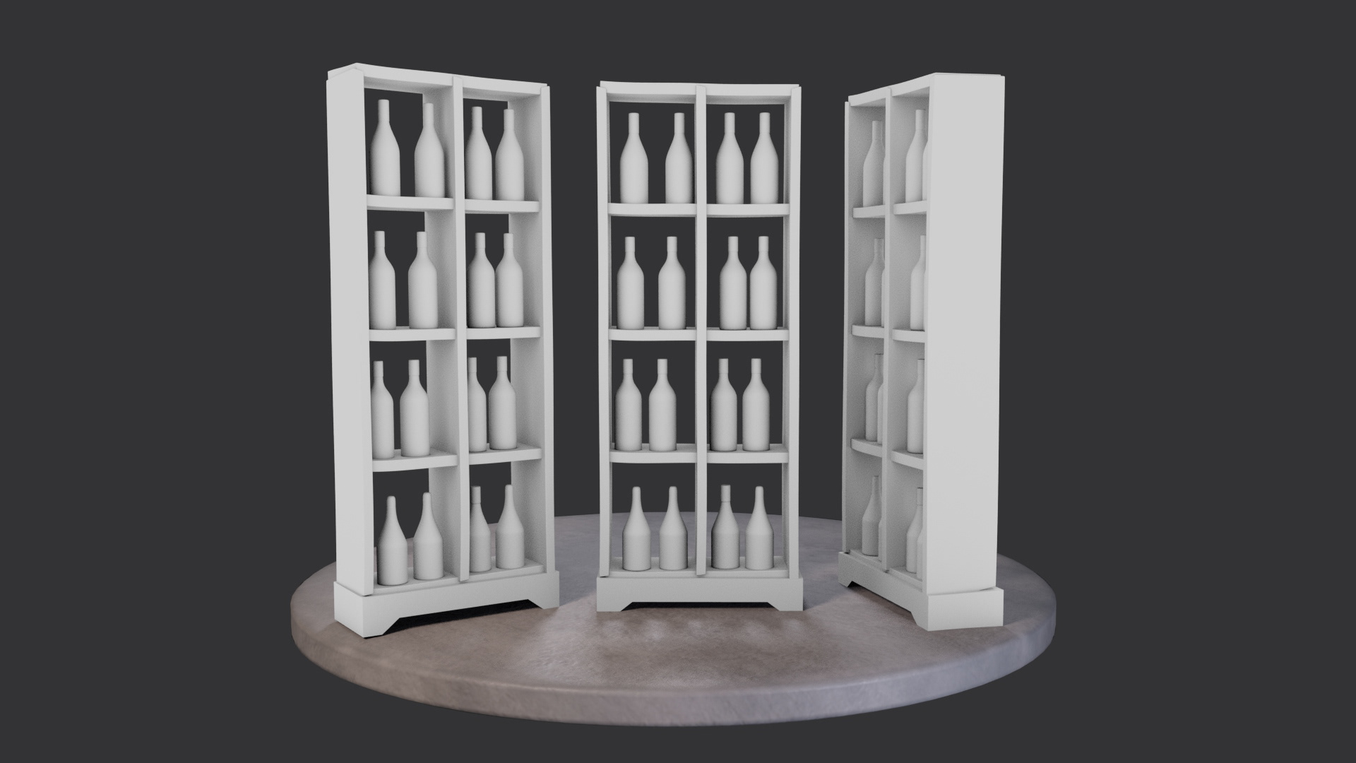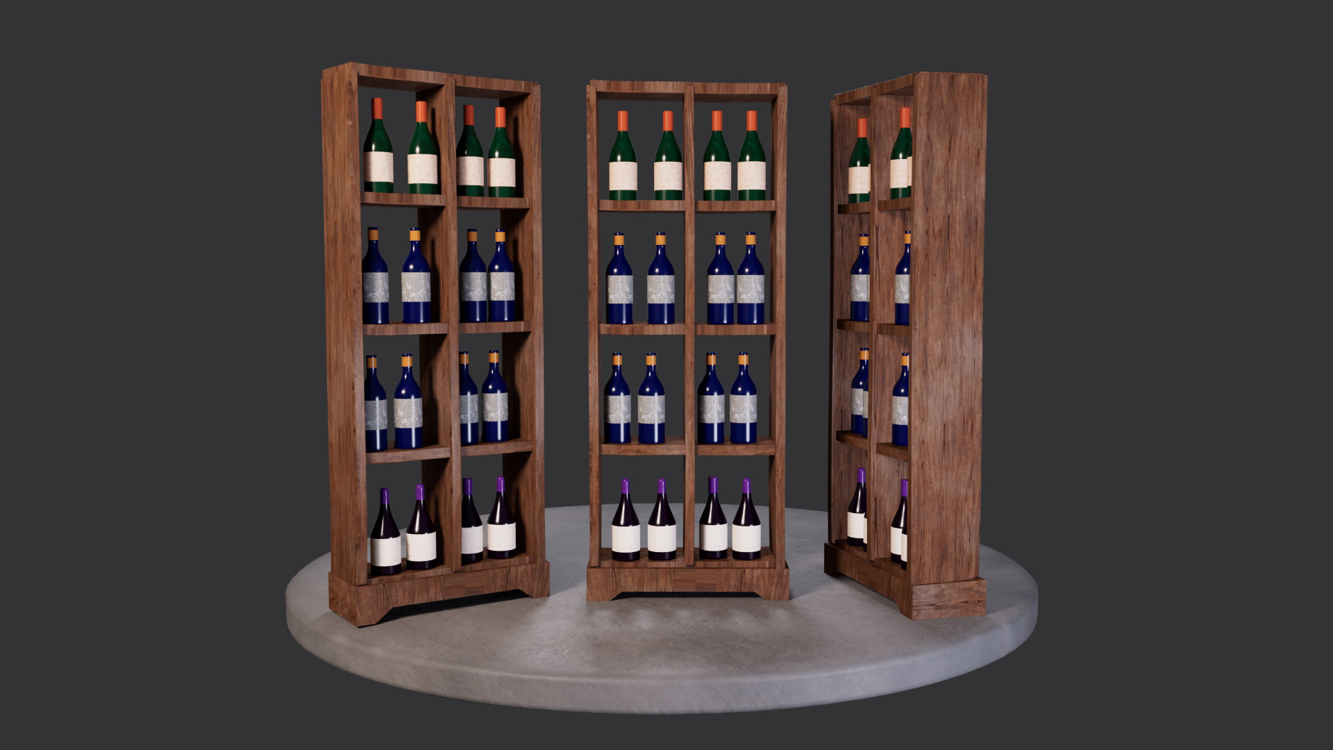 The Cheese Shop might be quaint, but it's got a taste for good wine. This wine shelf I modeled for my Cheese Shop scene, which I created in Maya and textured in Substance Painter.