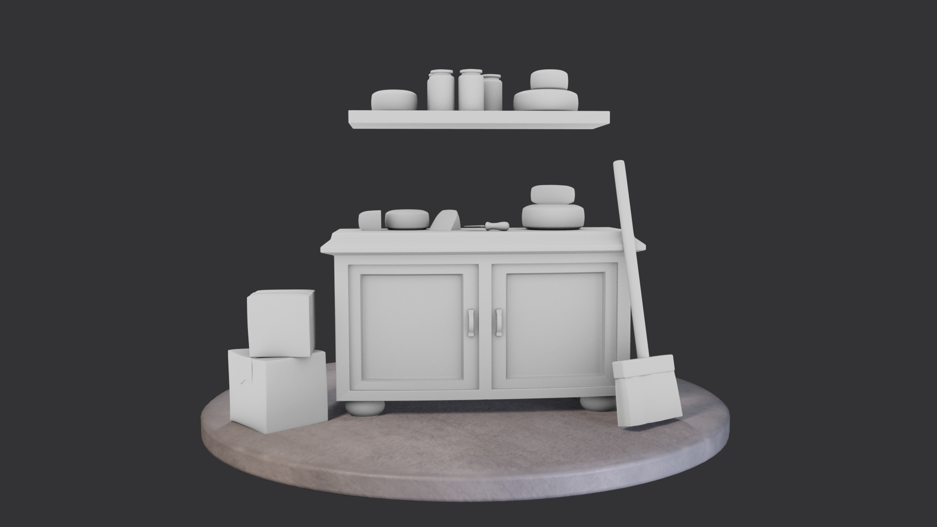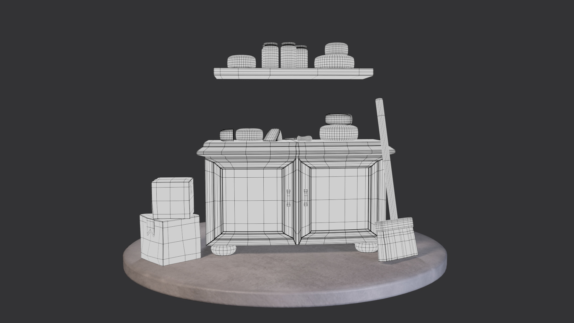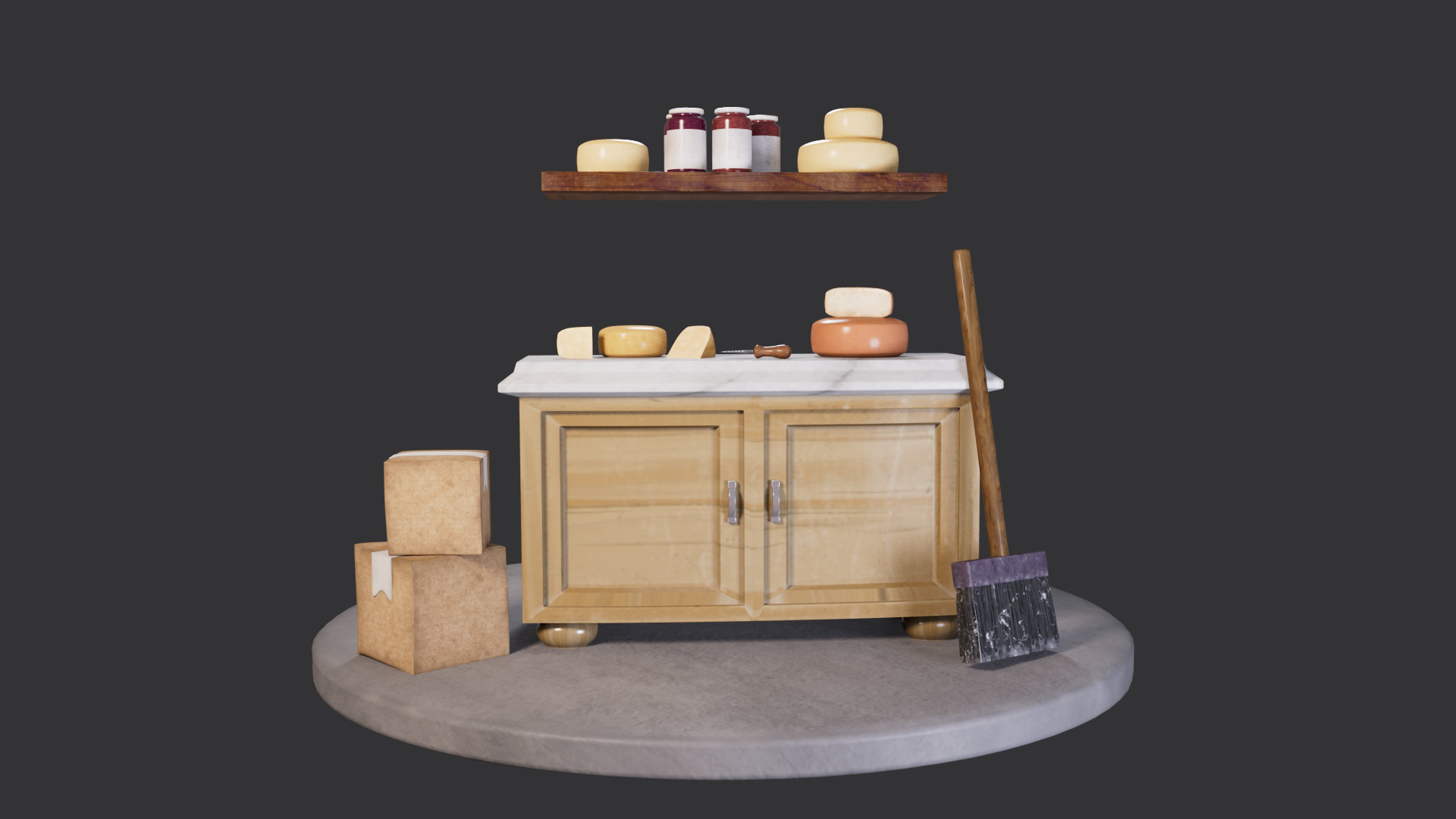 A slice of life from my Cheese Shop scene. This is one of the cabinets I created in Maya and textured in Substance Painter.