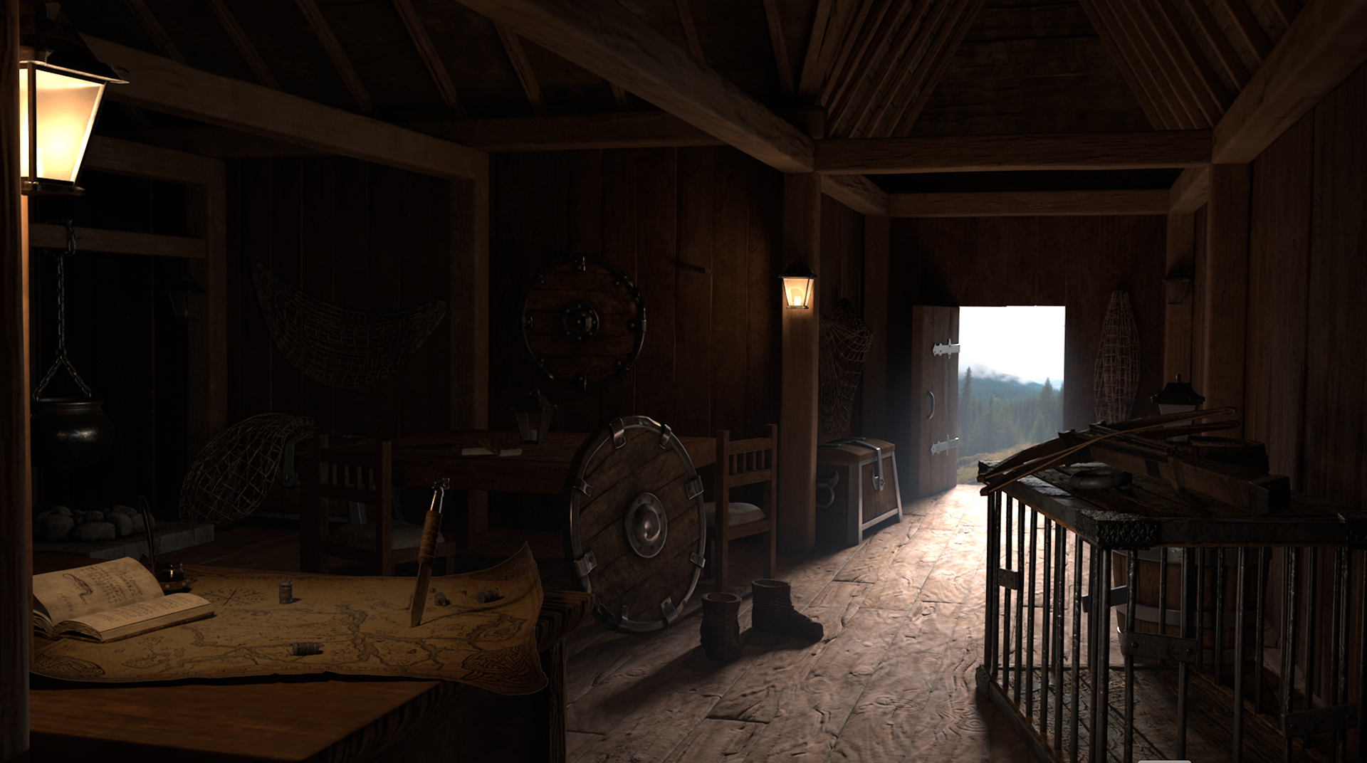 A Viking longhouse built for a wealthy hunter. Defending the village from attack and capturing elusive creatures. His people pay him handsomely for his work taking down dragons. This scene was modeled in Maya and textured in Substance Painter.